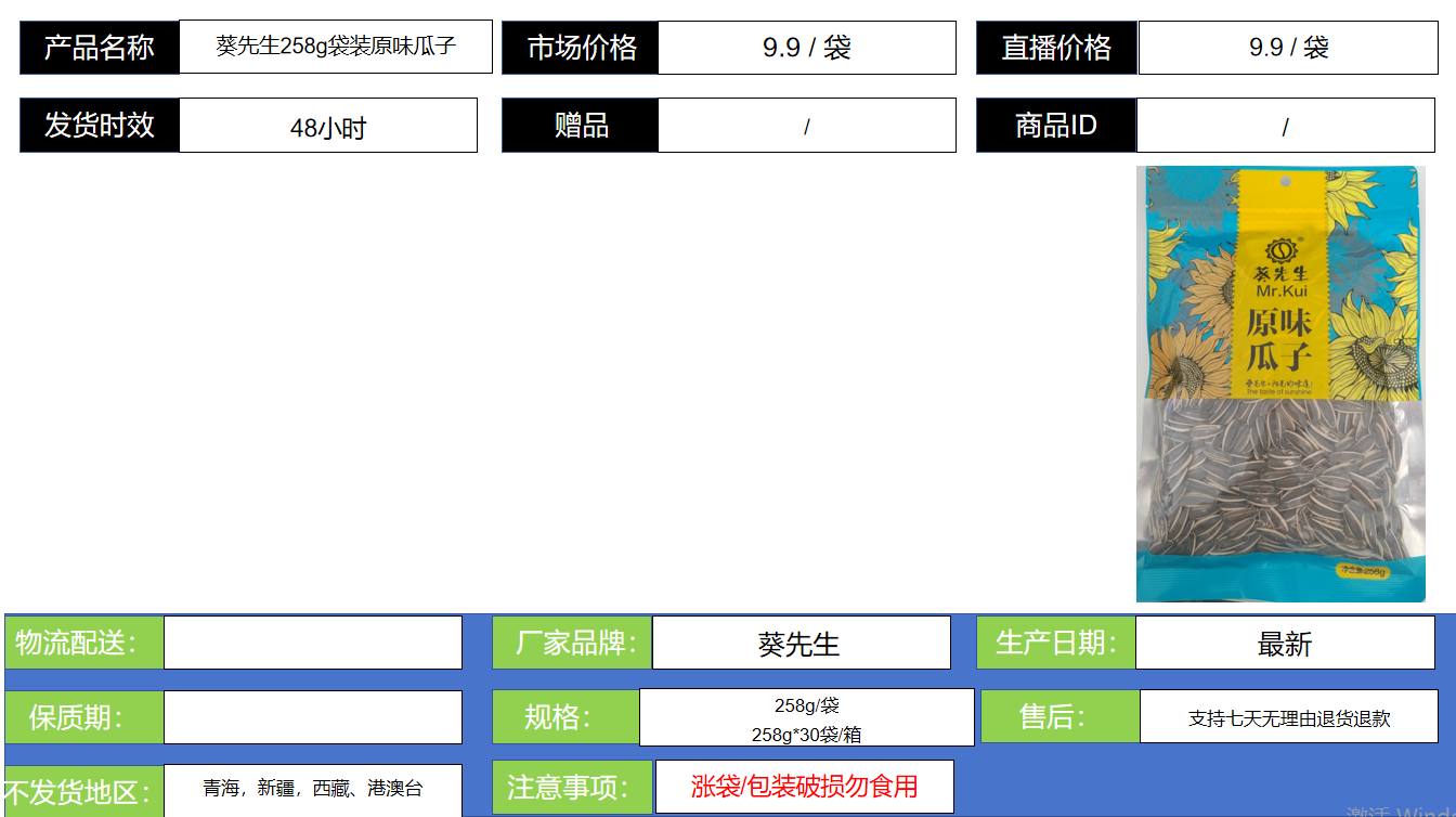 葵先生258g袋装瓜子