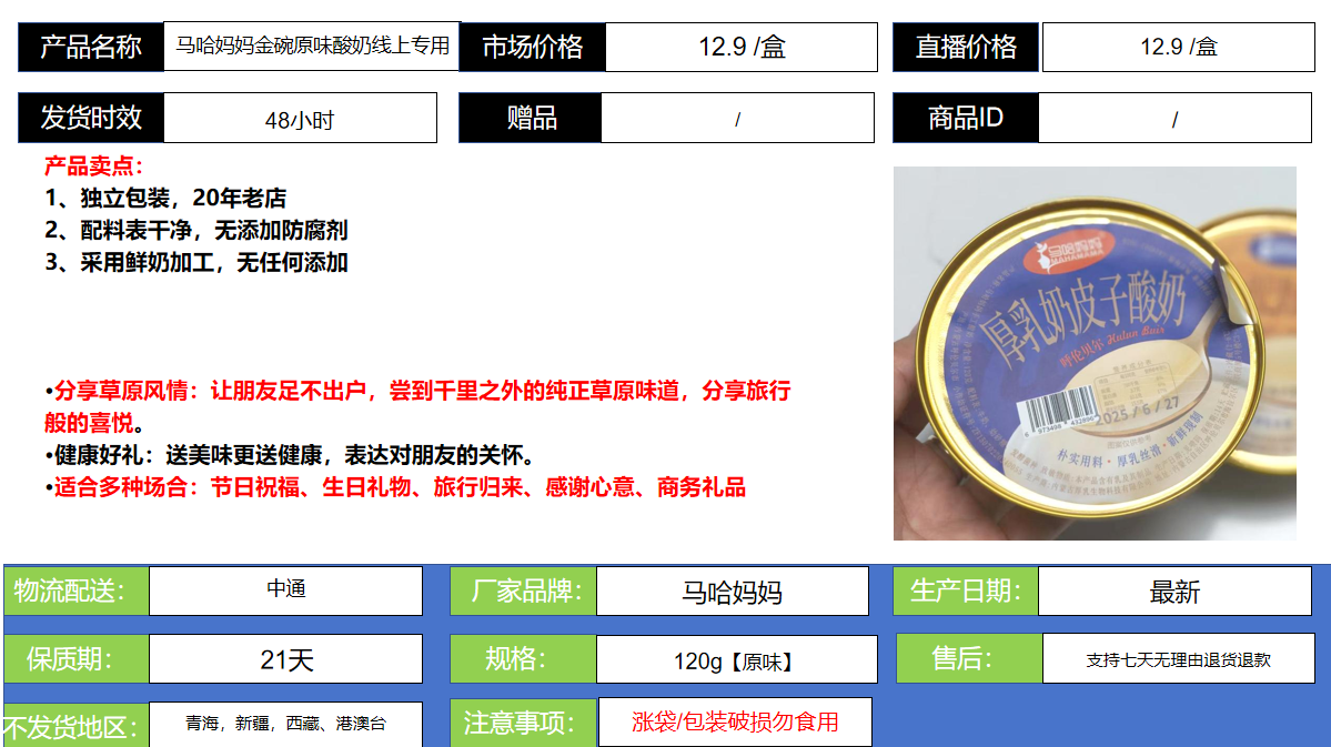 马哈妈妈金碗原味酸奶线上专用